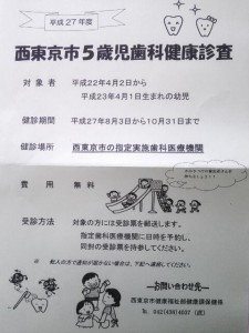 実施対象者;西東京市に住所を有する平成22年4月 2日から平成23年4月1日生まれの幼児